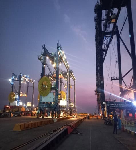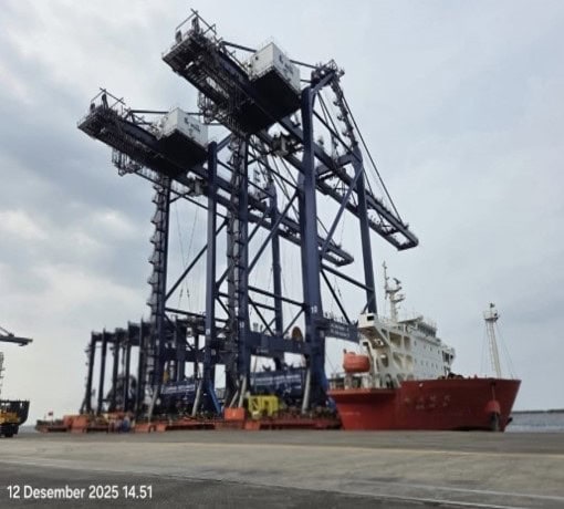 The first batch, consisting of 2 QCCs and 4 e-RTGCs, arrived at the Port of Tanjung Priok on 9th December 2025. Following successful berthing at TPK Koja Wharf on 12th December, the equipment is now undergoing comprehensive commissioning tests.